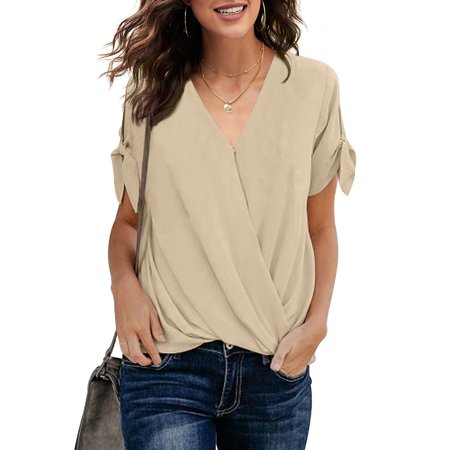 Dokotoo Women s Blouses V Neck Short Sleeve Chiffon Shirts Front Draped Wrap Twist Tops